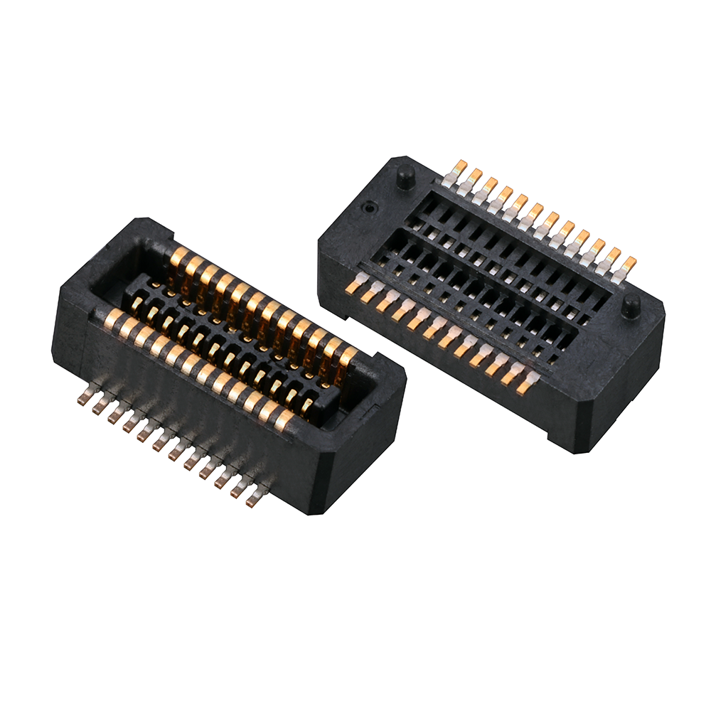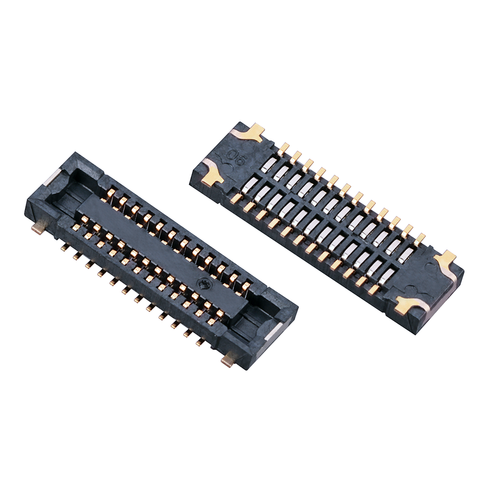 产品特征 描述0.4间距 普通BTB连接器公/母座公座间距0.4合高0.8